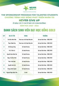 DANH SÁCH SINH VIÊN ĐẠT HỌC BỔNG GOLD TRỊ GIÁ 30.000.000 VNĐ NĂM HỌC 2023-2024