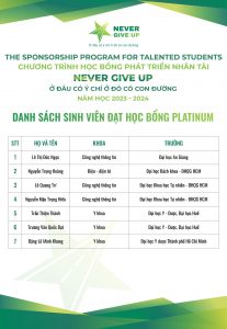 DANH SÁCH SINH VIÊN ĐẠT HỌC BỔNG PLATINUM TRỊ GIÁ 50.000.000 VNĐ NĂM HỌC 2023-2024